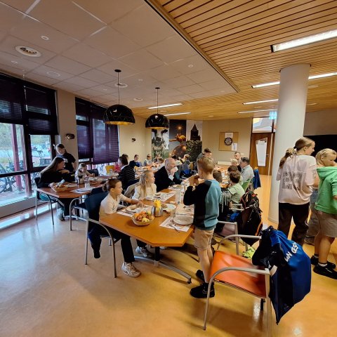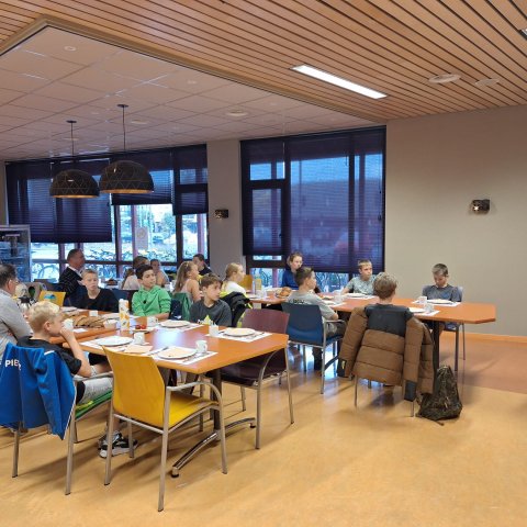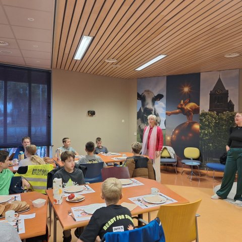 Uit de aangemelde basisscholen van onze gemeente is Groep 8 van Basisschool De Akkerwinde uit Hooge Mierde de klas die vanmorgen is komen ontbijten op het gemeentehuis. Leerkracht Tijn was samen met een stagiaire en 18 leerlingen bij ons te gast.